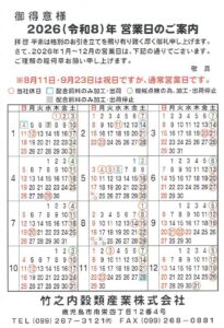 ※1月4日(日)は配合飼料のみ加工・出荷をいたします。
